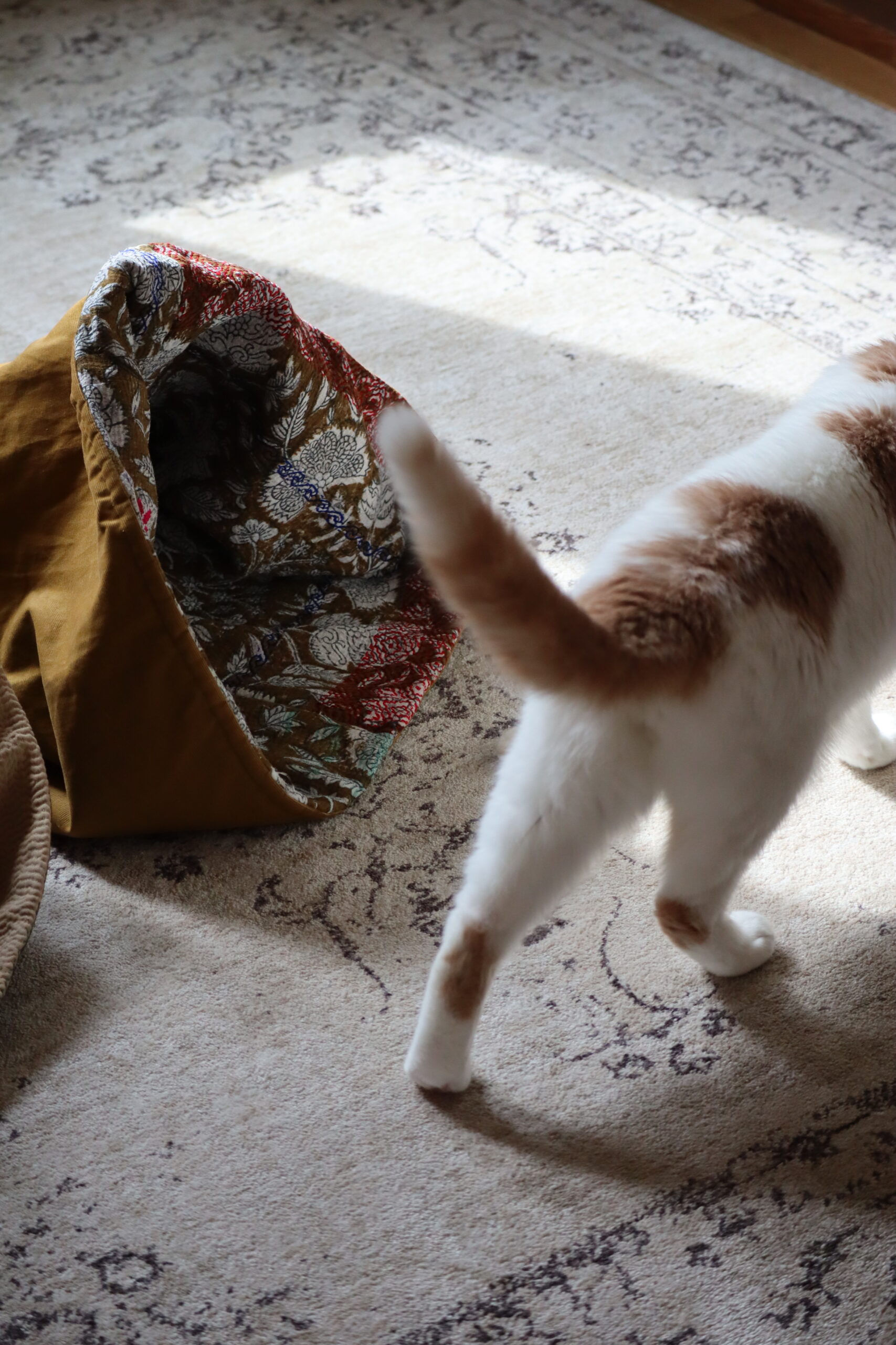 にゃんこやワンコのお休みスペースとして中に篭ったり、ふわふわお座布団にしたり椅子カバーにしたりと