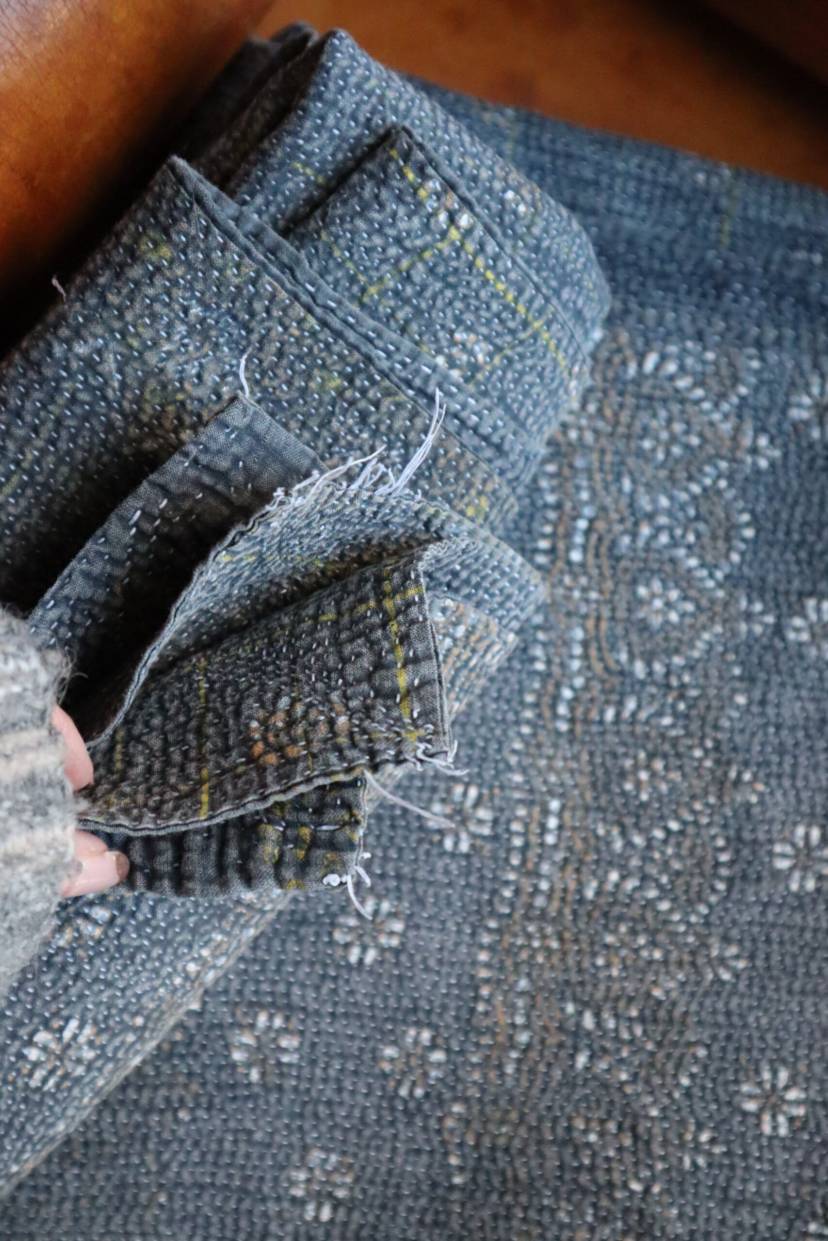 ヴィンテージのカンタキルトには擦り切れホツレ汚れ等が見られますが、それもまたこの布の個性として捉えてくだされば幸いです。ビンテージ品の特性をご理解頂きご購入をよろしくお願いいたします。